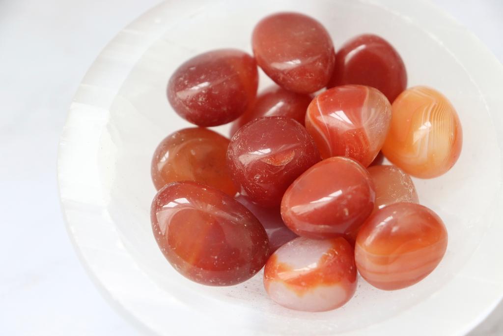 Carnelian is a gorgeous and powerful crystal. Carnelian’s colour ranges from an orange to reddish, dark brown. Carnelian is one of the more popular orange stones.Carnelian is the stone for confidence, empowerment and boosting self-esteem. Additionally, Carnelian can assist in boosting creativity, energy, and sexual energy. Please be aware that crystals vary in colour and size but are roughly around the same size and colour.